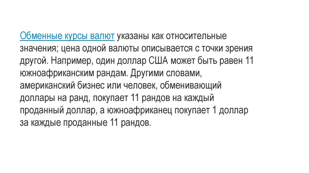 Обменные курсы валют указаны как относительныезначения; цена одной валюты описывается с точки зрения
