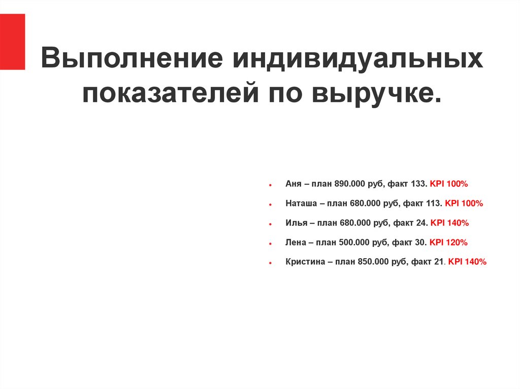 Выполнение индивидуальныхпоказателей по выручке.