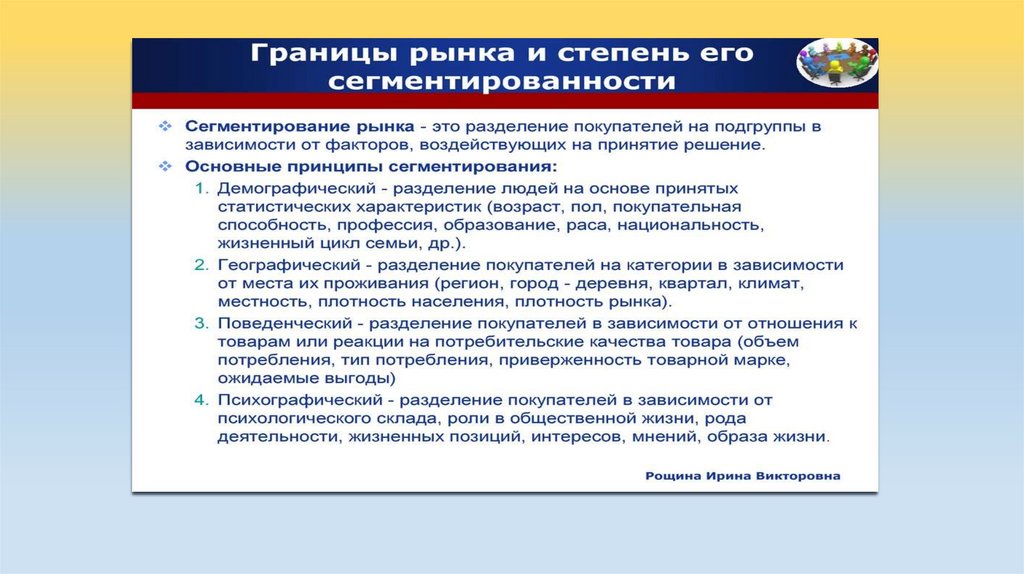 покупателей, обеспечивающих свободу выбора товаров, а также условия для свободной конкуренции. Такая рыночная