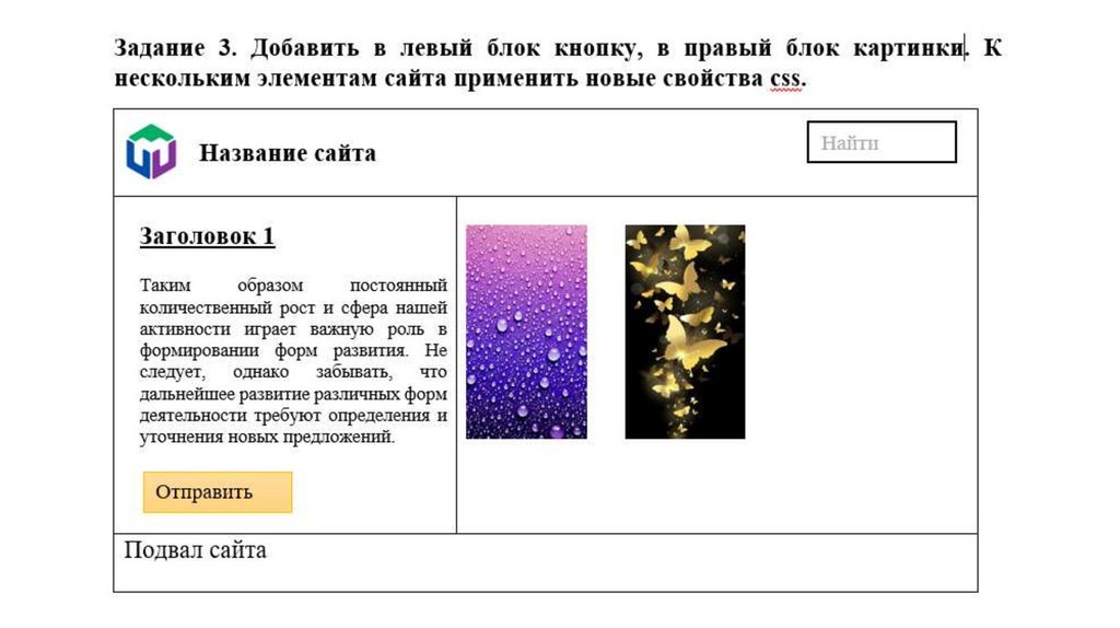 • Подключение стилей: <link rel="stylesheet" href=“style.css">