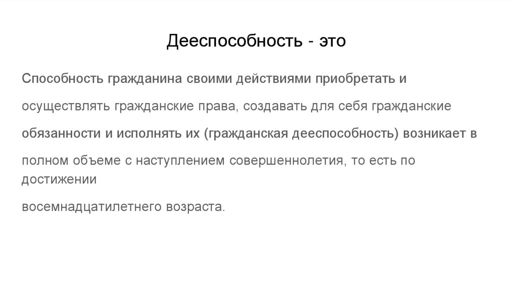 восемнадцатилетнего возраста, приобретает дееспособность в