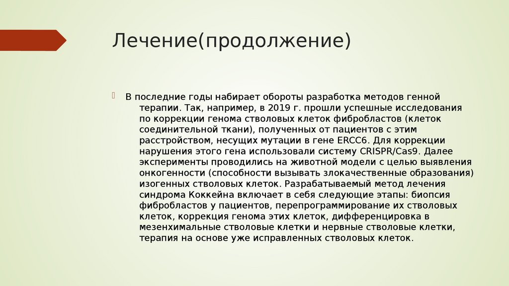 Лечение(продолжение)В последние годы набирает обороты разработка методов генной