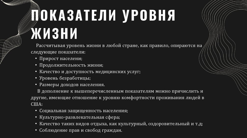 УРОВЕНЬ ЖИЗНИНАСЕЛЕНИЯ США