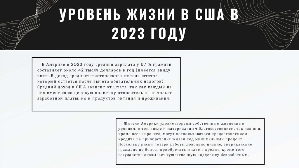 УРОВЕНЬ ЖИЗНИ В США В2023 ГОДУ