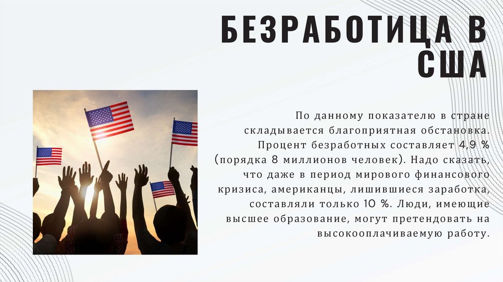 По скольку риски пот ери работ ы д о во льно низ кие , американские