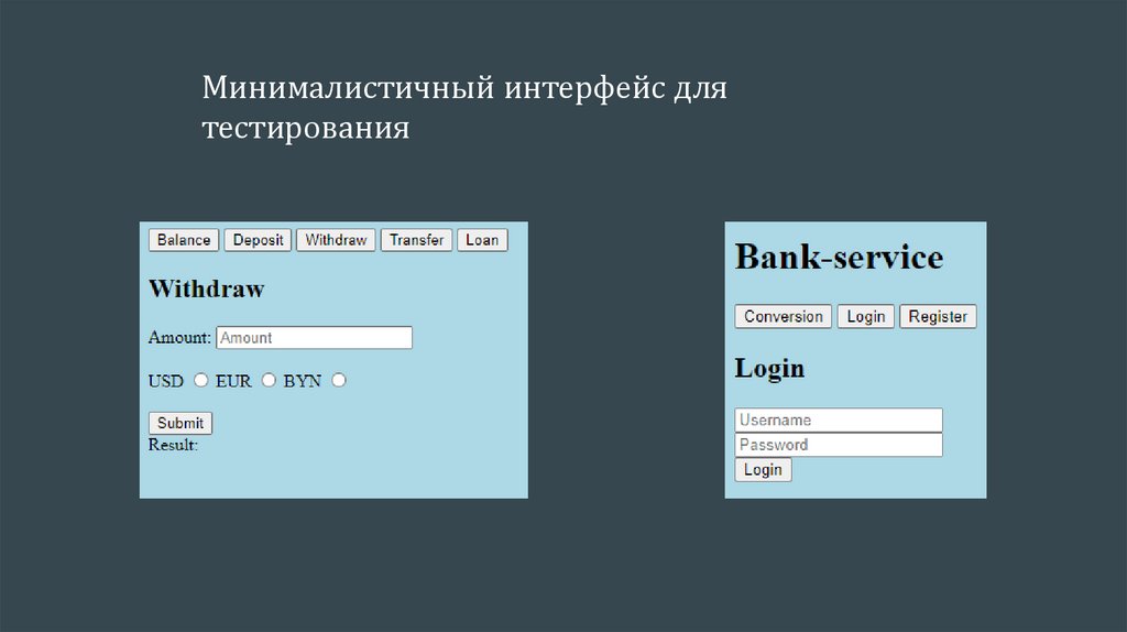 Минималистичный интерфейс длятестирования