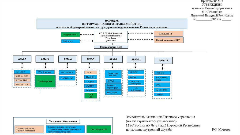 оперативной дежурной смены со структурными подразделениями Главного управления