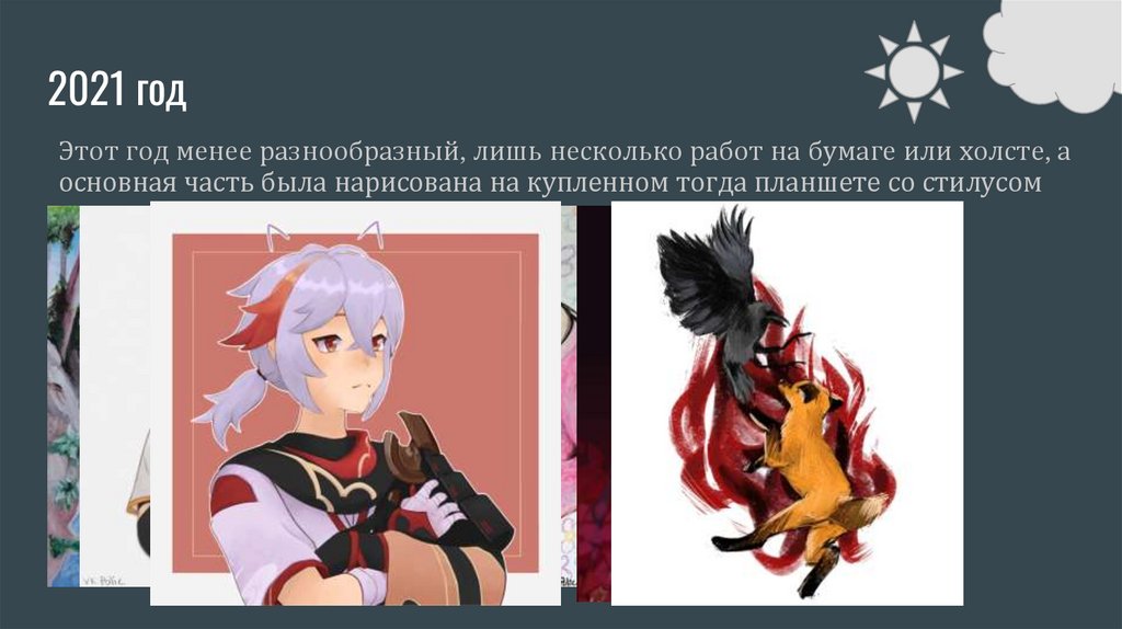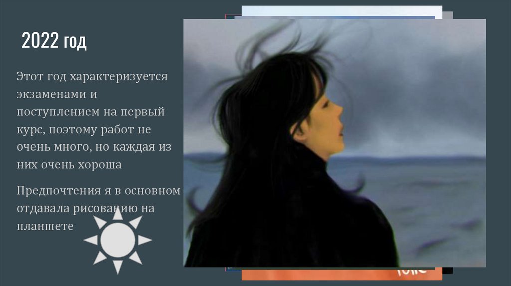 2021 годЭтот год менее разнообразный, лишь несколько работ на бумаге или холсте, а