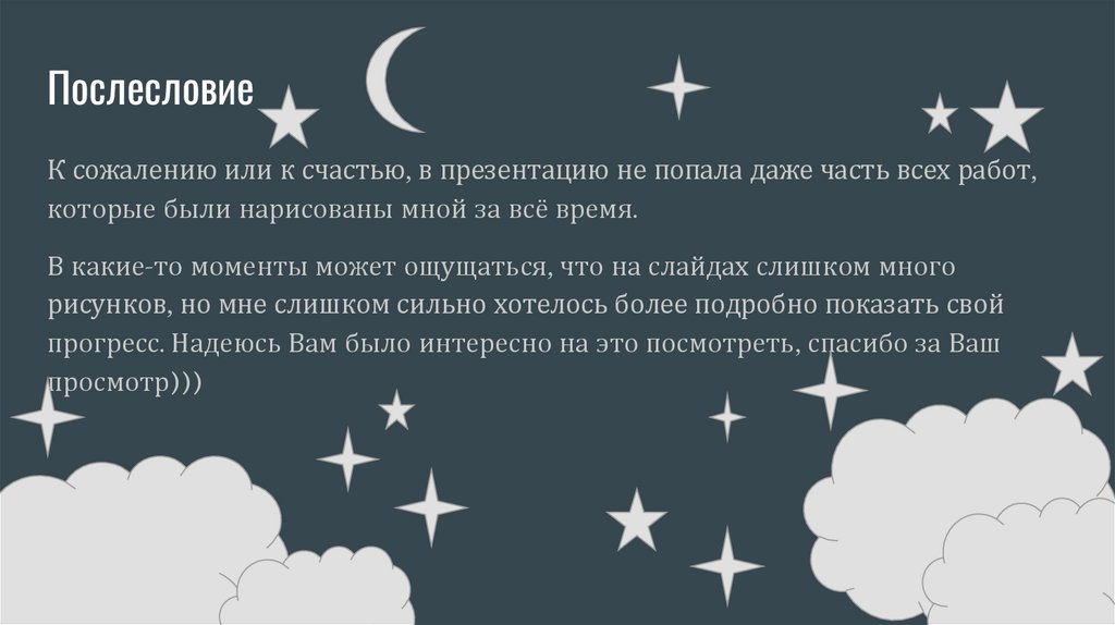 ПослесловиеК сожалению или к счастью, в презентацию не попала даже часть всех работ,