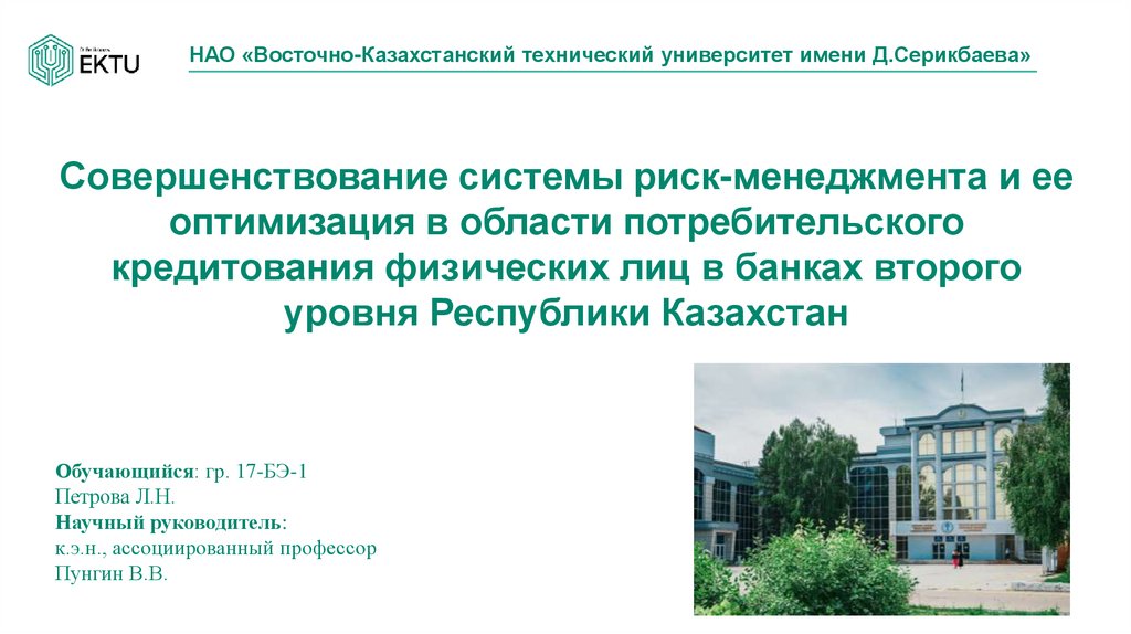 НАО «Восточно-Казахстанский технический университет имени Д.Серикбаева»Совершенствование системы риск-менеджмента и ее
