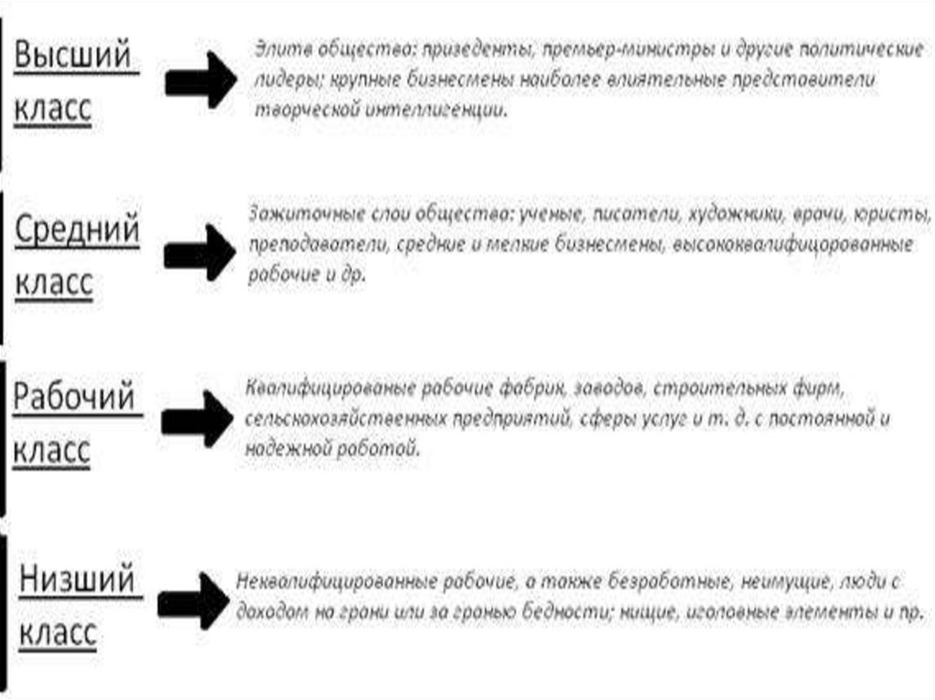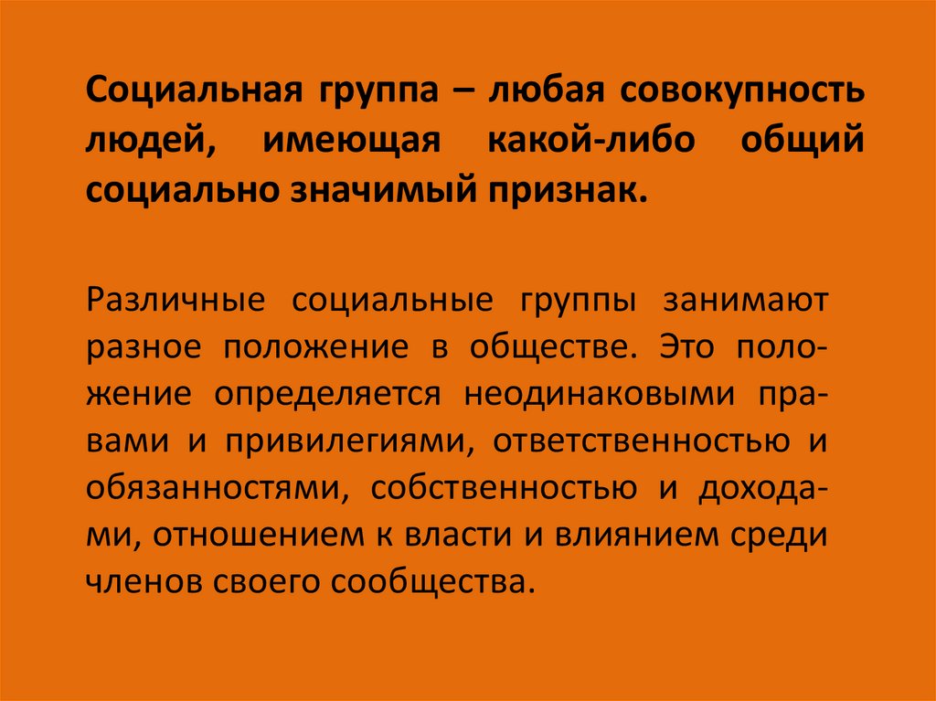 разное положение в обществе. Это положение определяется неодинаковыми правами и привилегиями, ответственностью и
