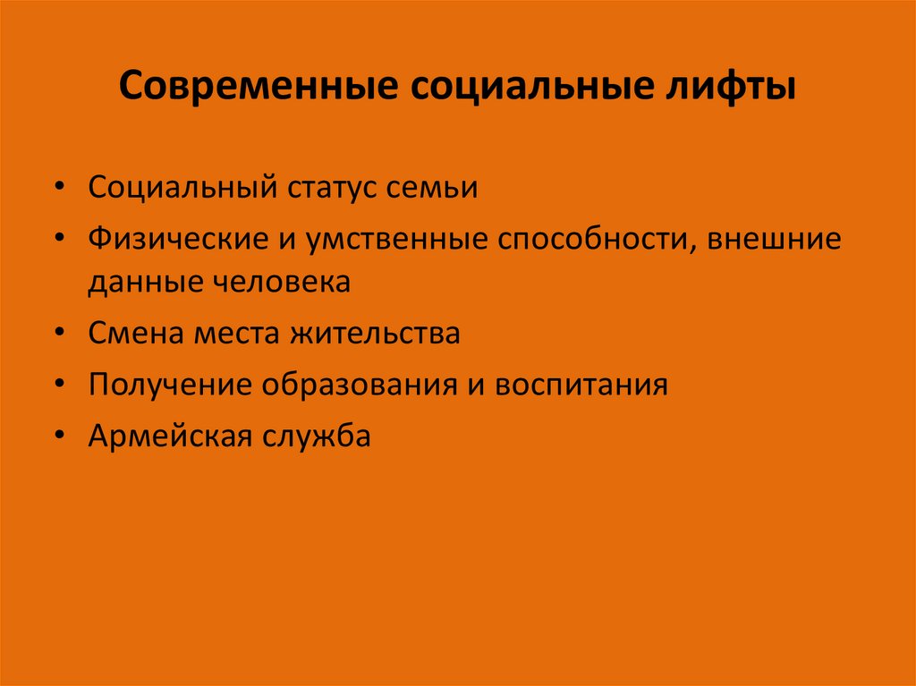 Современные социальные лифты• Социальный статус семьи