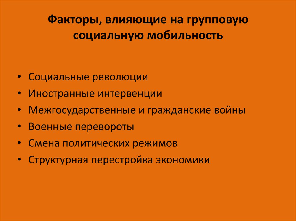 Факторы, влияющие на групповуюсоциальную мобильность
