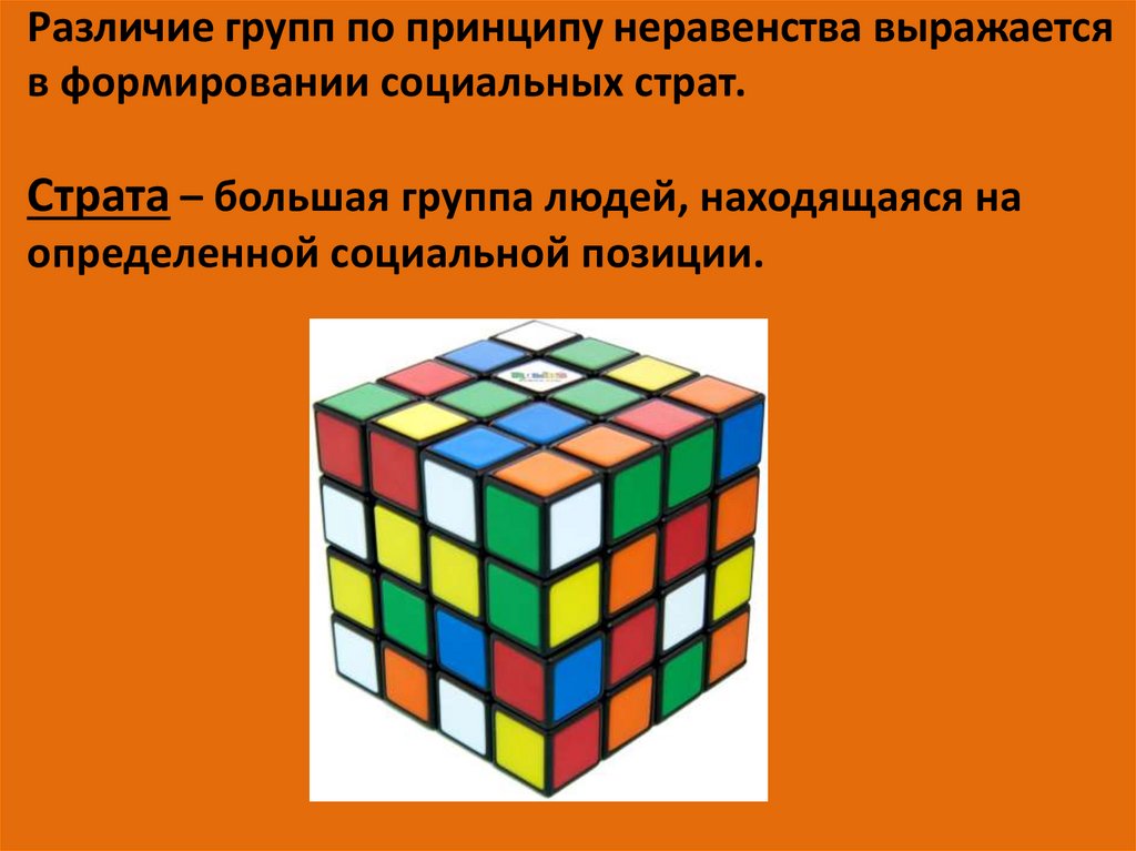 Различие групп по принципу неравенства выражаетсяв формировании социальных страт.