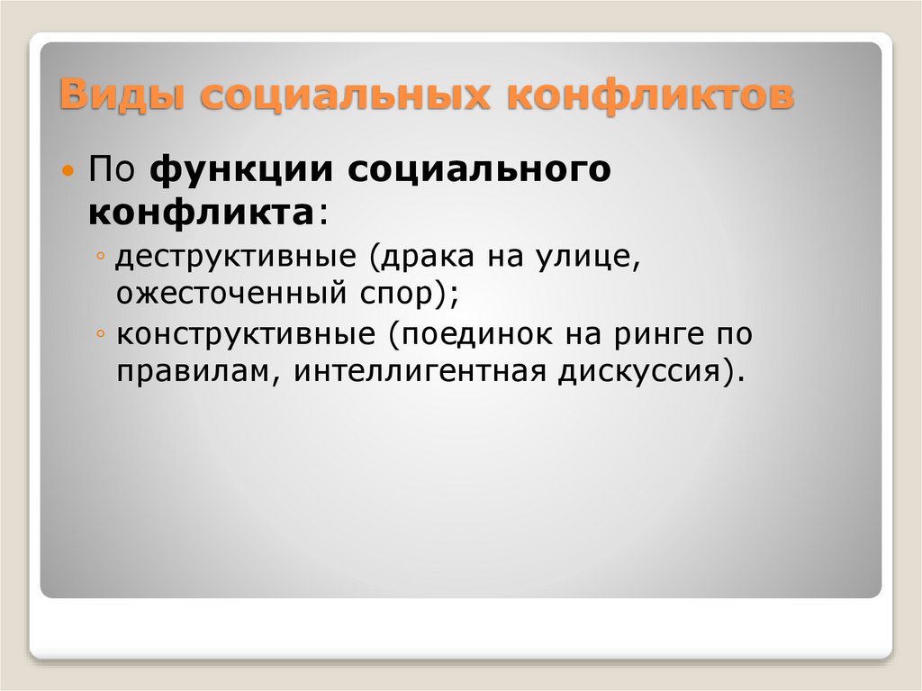 Виды социальных конфликтовПо функции социального