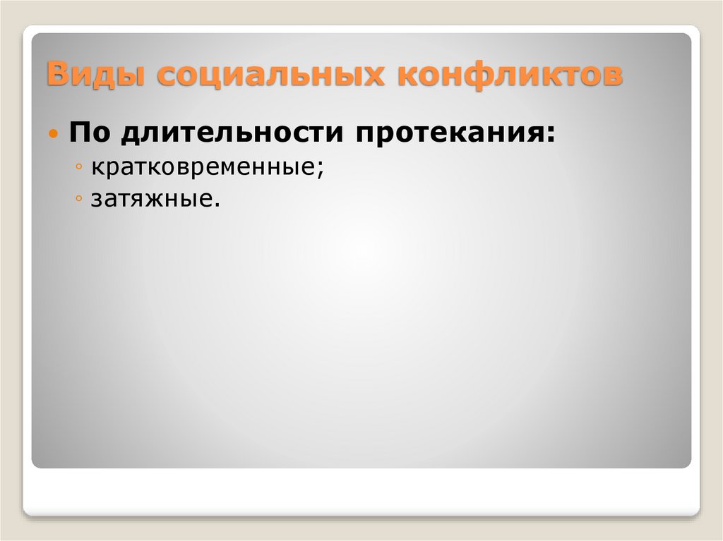 Виды социальных конфликтовПо длительности протекания: