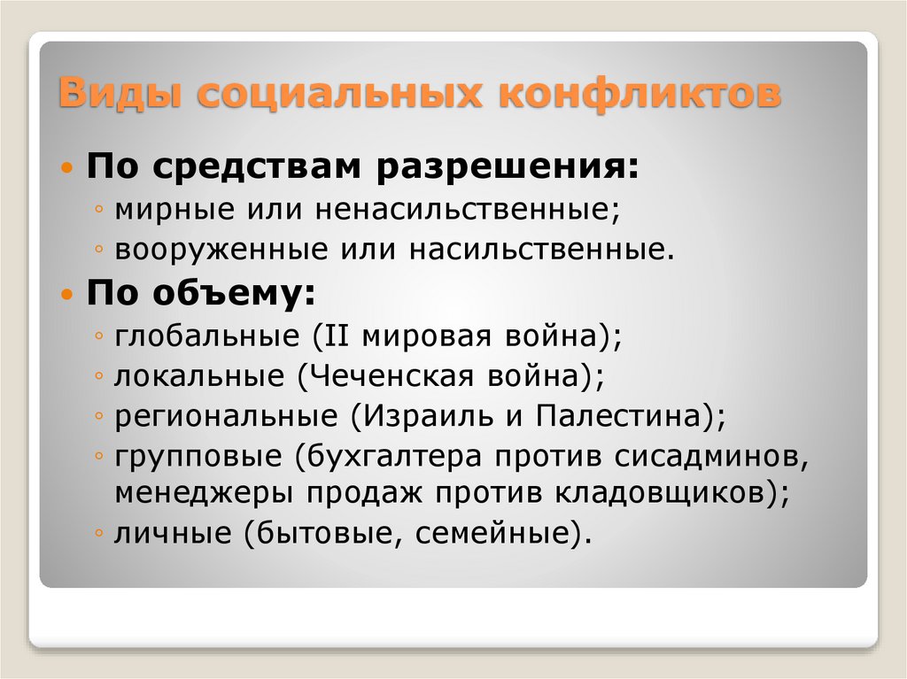 Виды социальных конфликтовПо средствам разрешения: