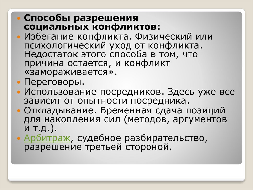 Способы разрешениясоциальных конфликтов: