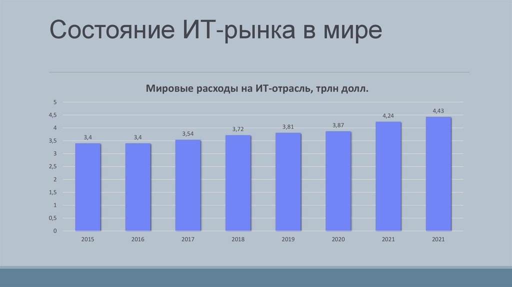 Состояние ИТ-рынка в миреМировые расходы на ИТ-отрасль, трлн долл.