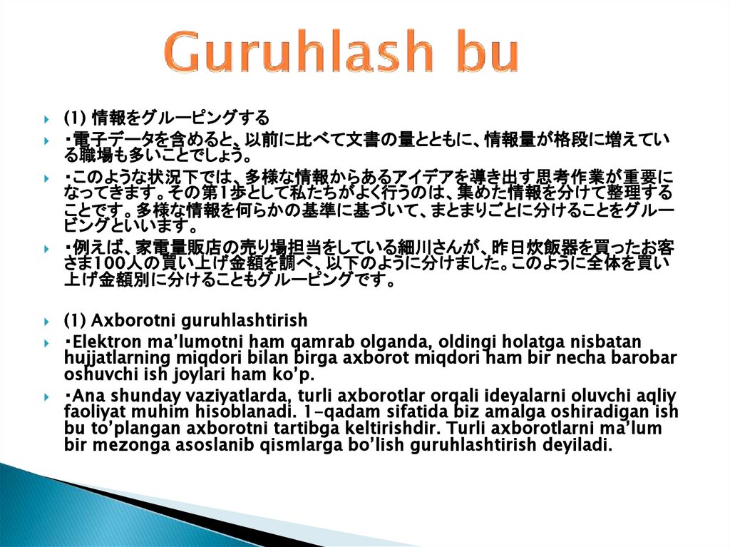 Ma'lumotlarni tartibga solish. 第4章 情報を整理する