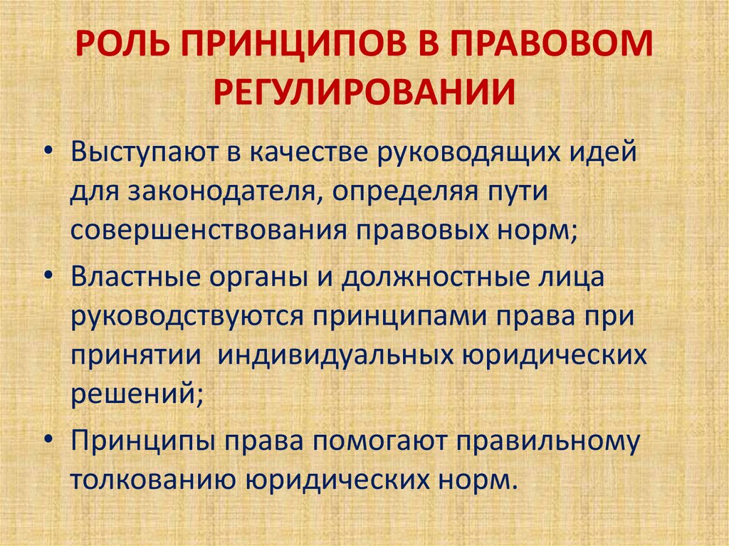 РОЛЬ ПРИНЦИПОВ В ПРАВОВОМРЕГУЛИРОВАНИИ