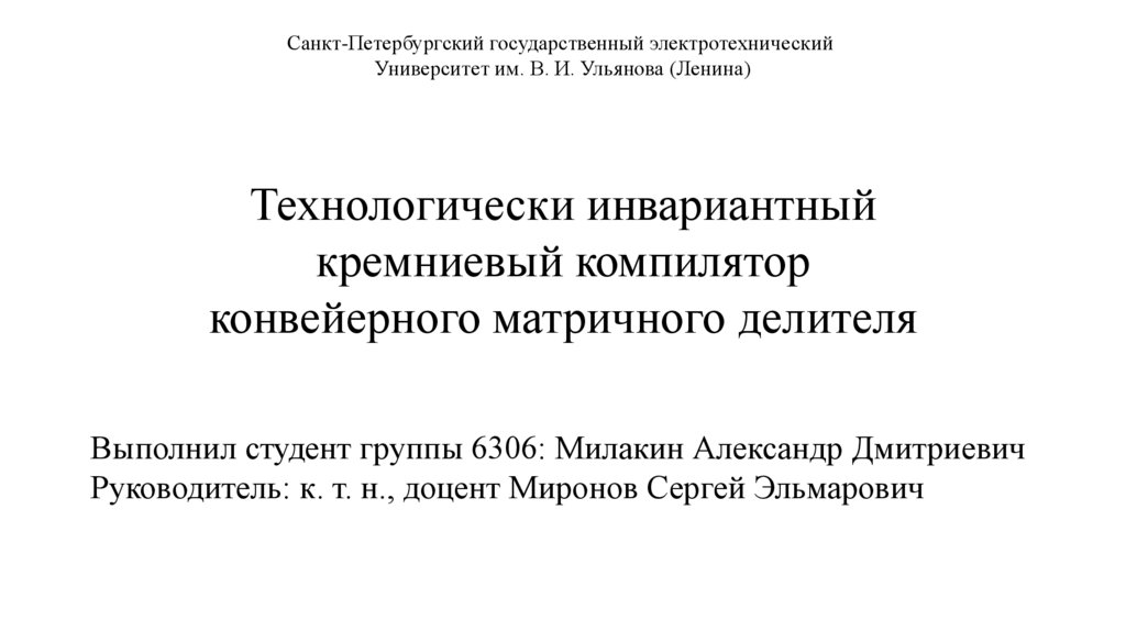 Санкт-Петербургский государственный электротехническийУниверситет им. В. И. Ульянова (Ленина)