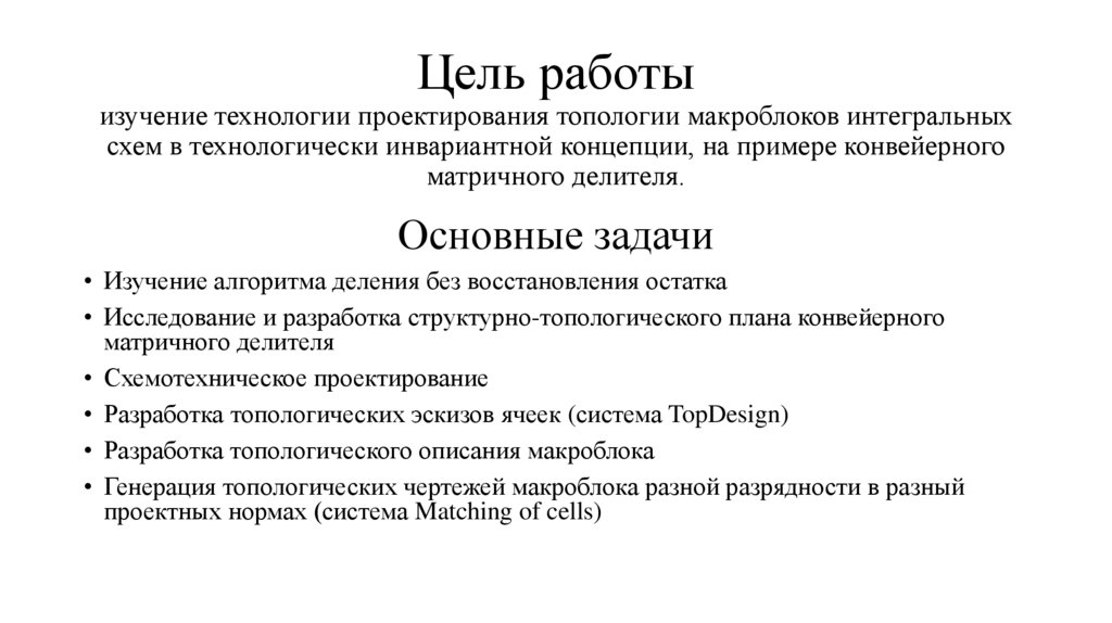Цель работыизучение технологии проектирования топологии макроблоков интегральных