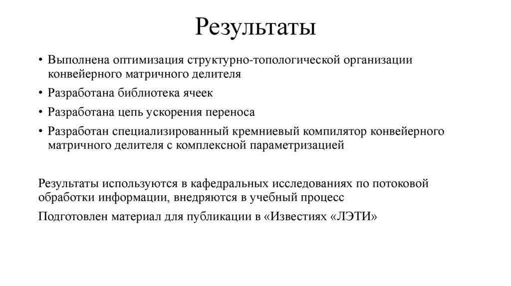 Результаты• Выполнена оптимизация структурно-топологической организации
