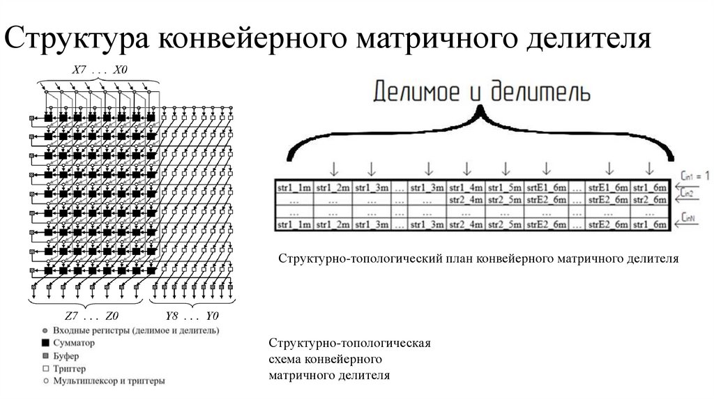 Структура конвейерного матричного делителяСтруктурно-топологический план конвейерного матричного делителя