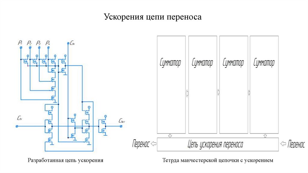 Тетрада сумматоров на манчестерской цепочке с ускорением