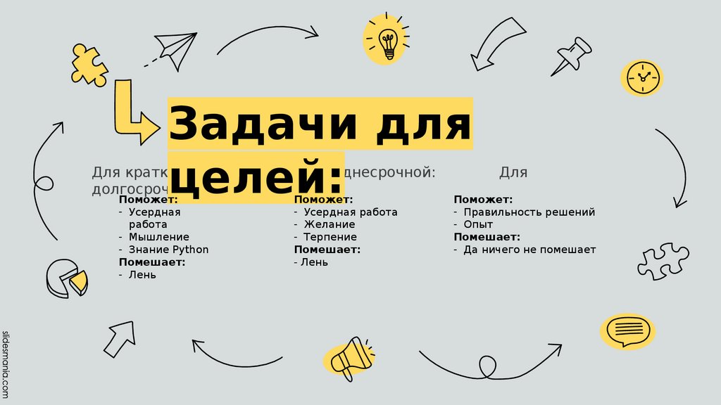 Задачи дляцелей: