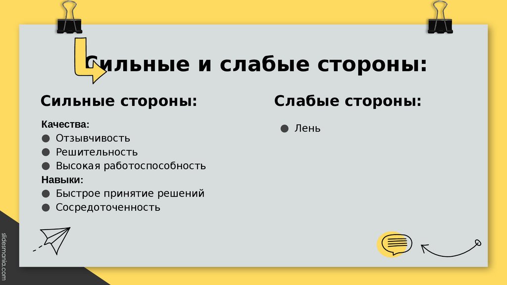Сильные и слабые стороны:Сильные стороны: