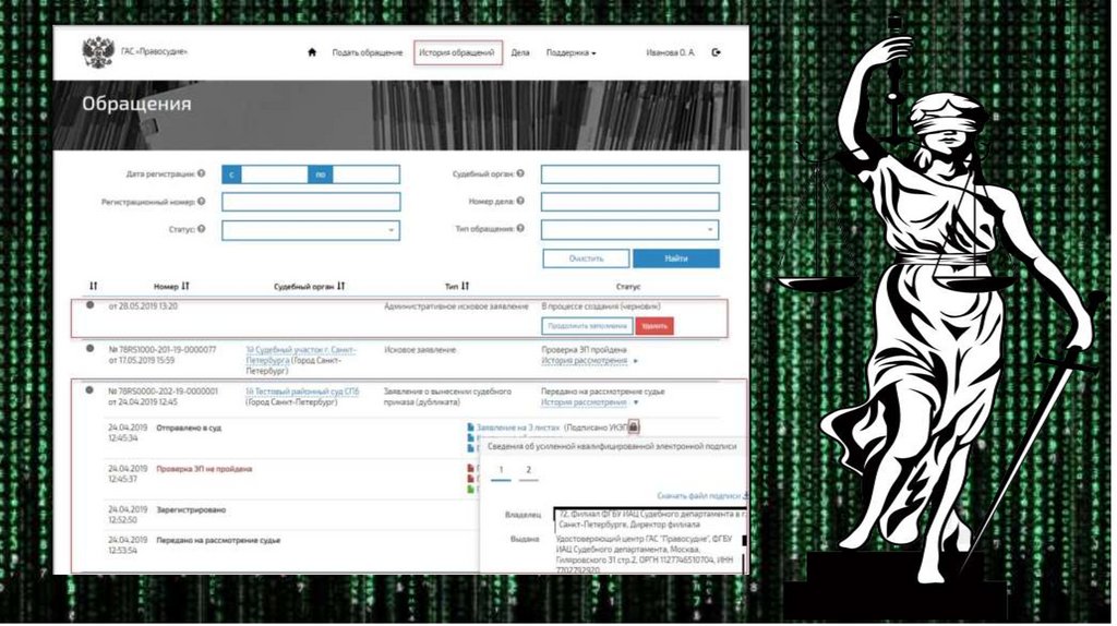 И наконец, системы электронного правосудия дают прекрасную возможность — все участники