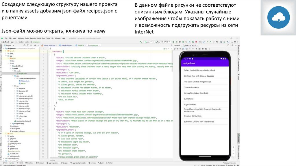 Создадим следующую структуру нашего проектаи в папку assets добавим json-файл recipes.json с