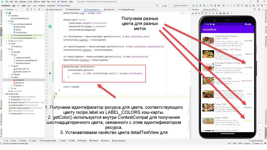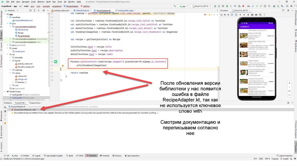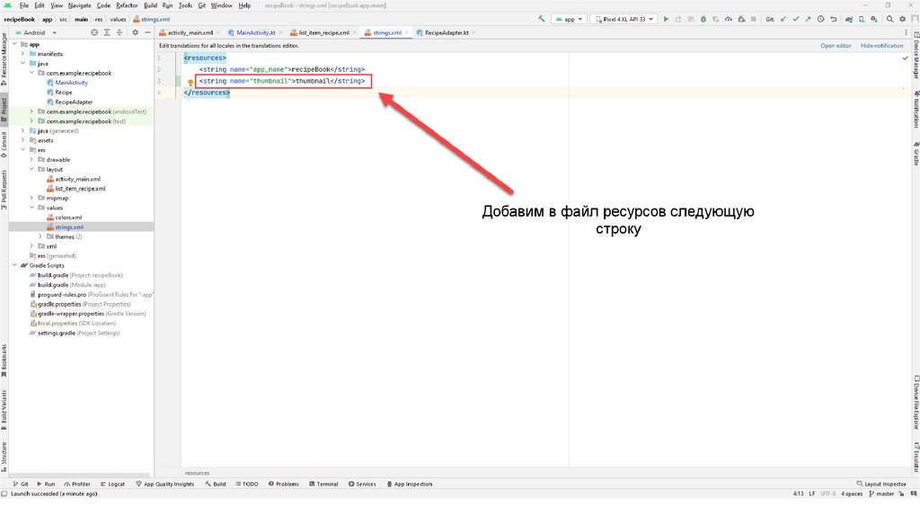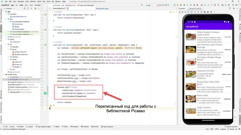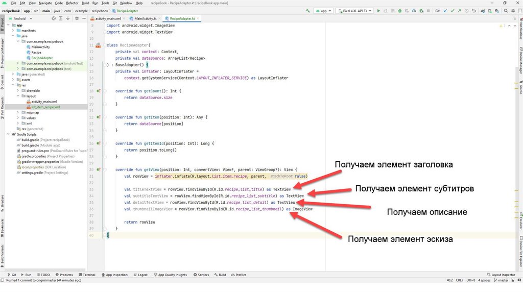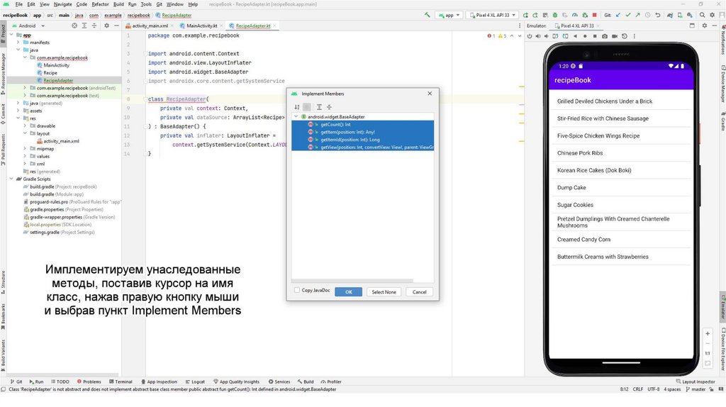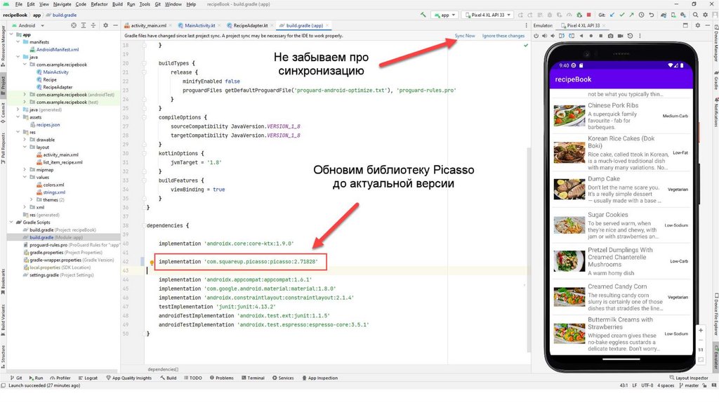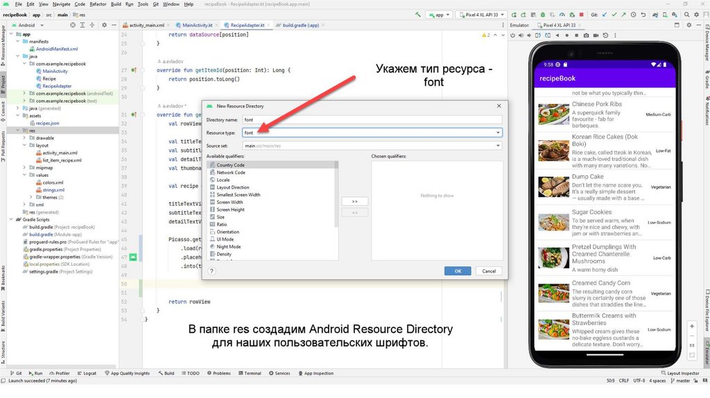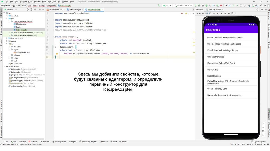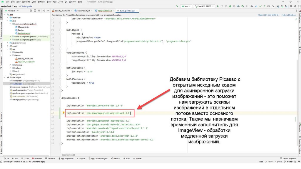 Также создадим вспомогательный класс Recipe.kt С помощью данного класса мы будемчитать информацию из json-файла. Данный файл также можно скопировать из презентации