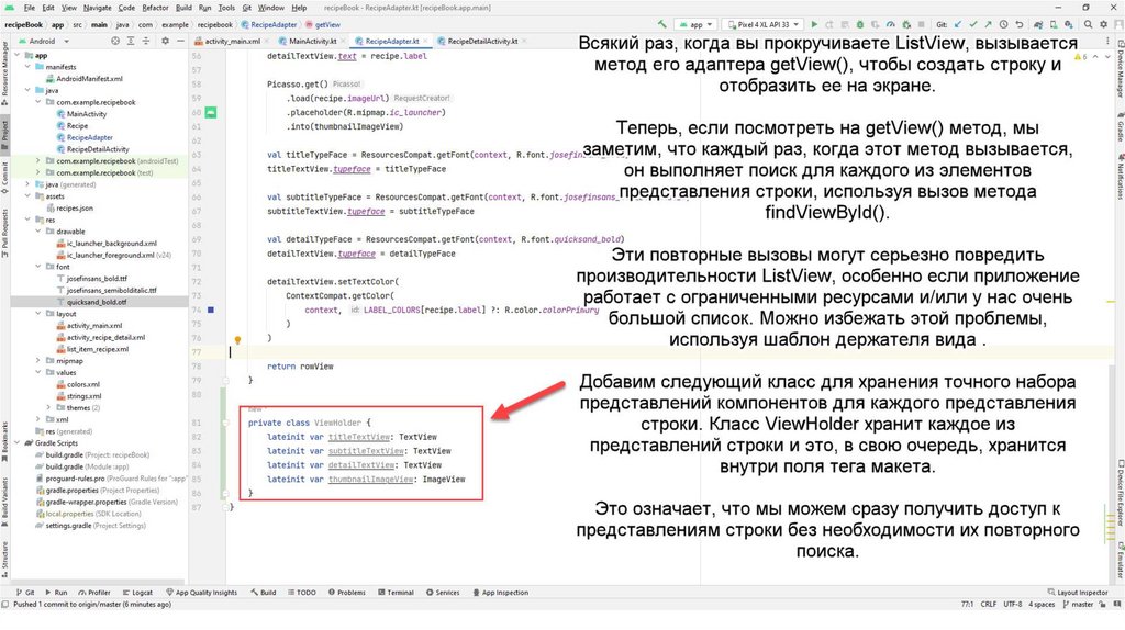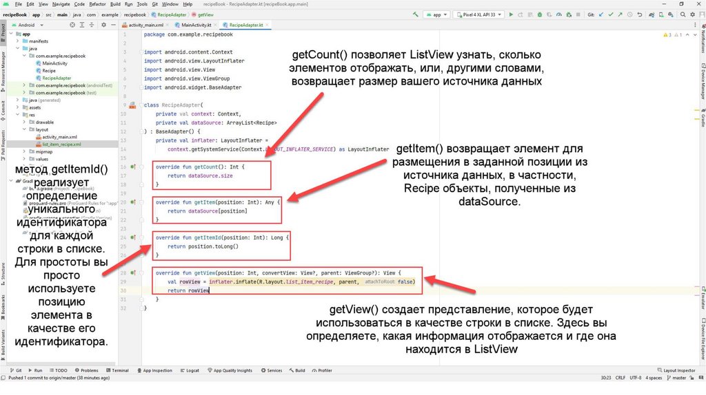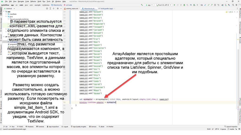 • Он передает эту информацию в ListView