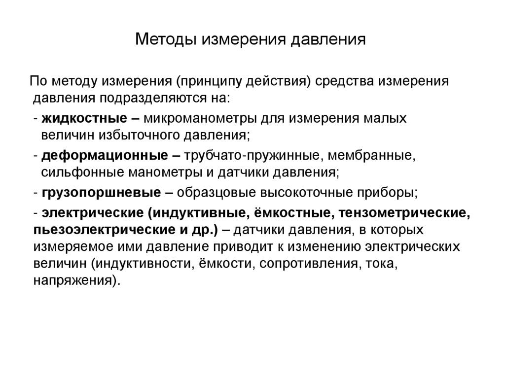 Методы измерения давленияПо методу измерения (принципу действия) средства измерения