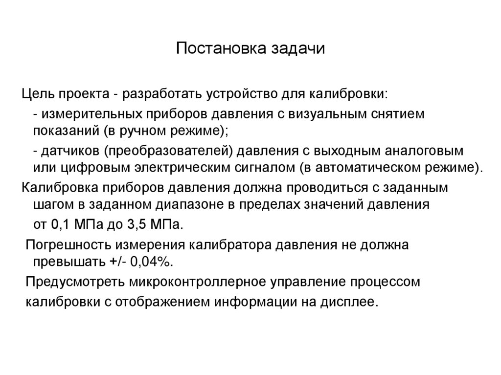 Постановка задачиЦель проекта - разработать устройство для калибровки: