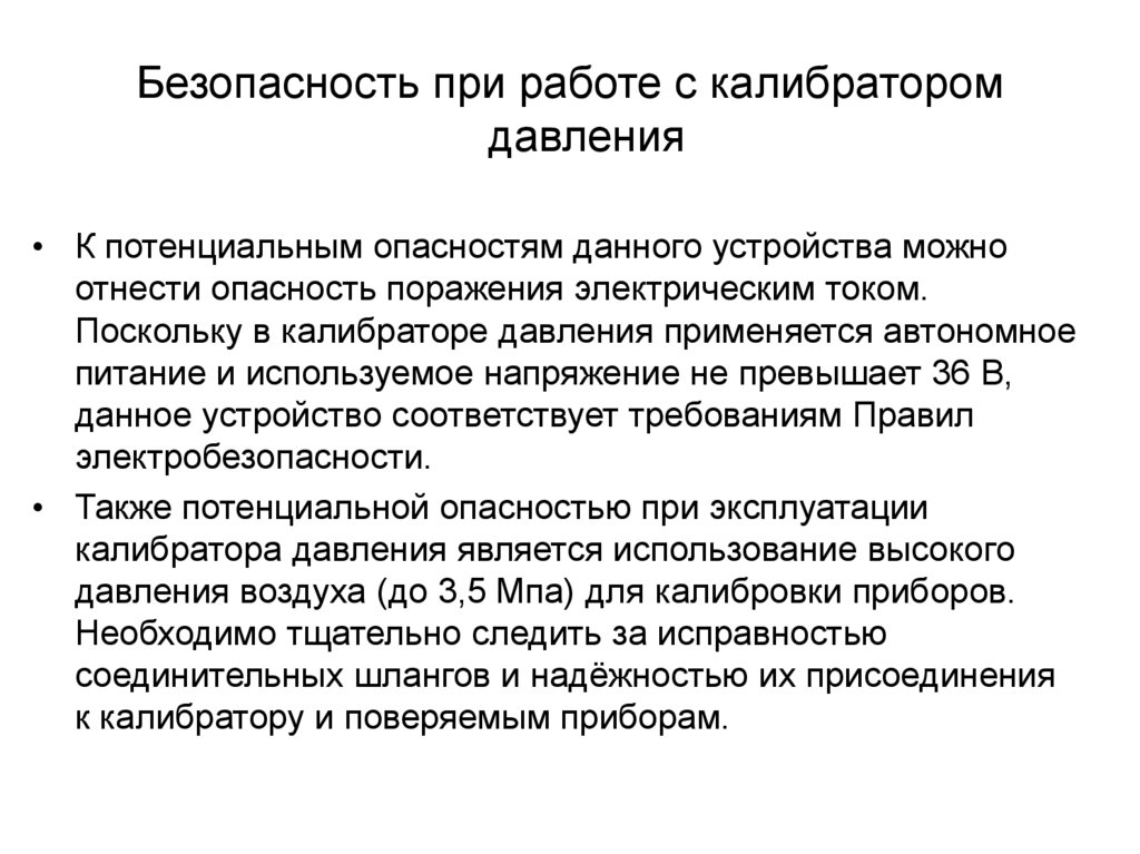 давления воздуха (до 3,5 Мпа) для калибровки приборов.