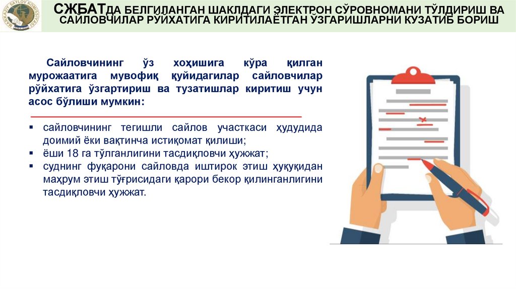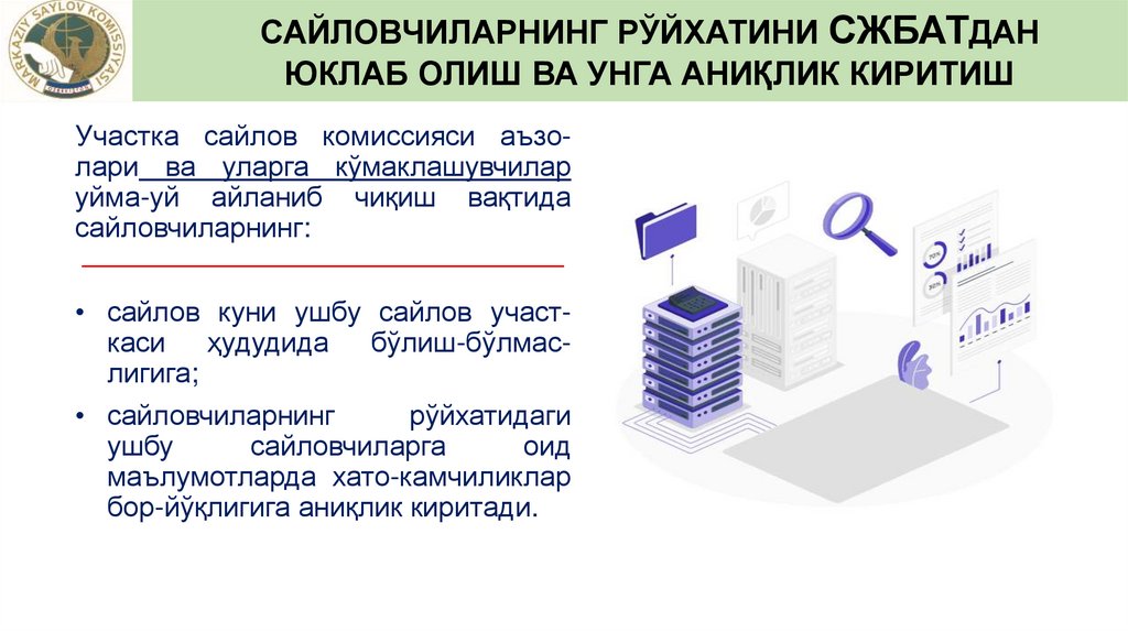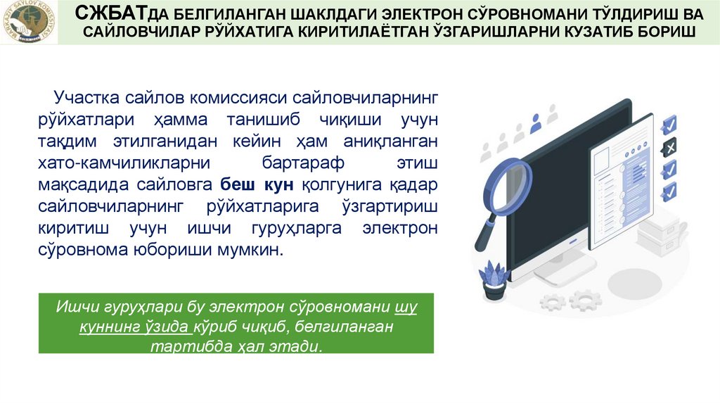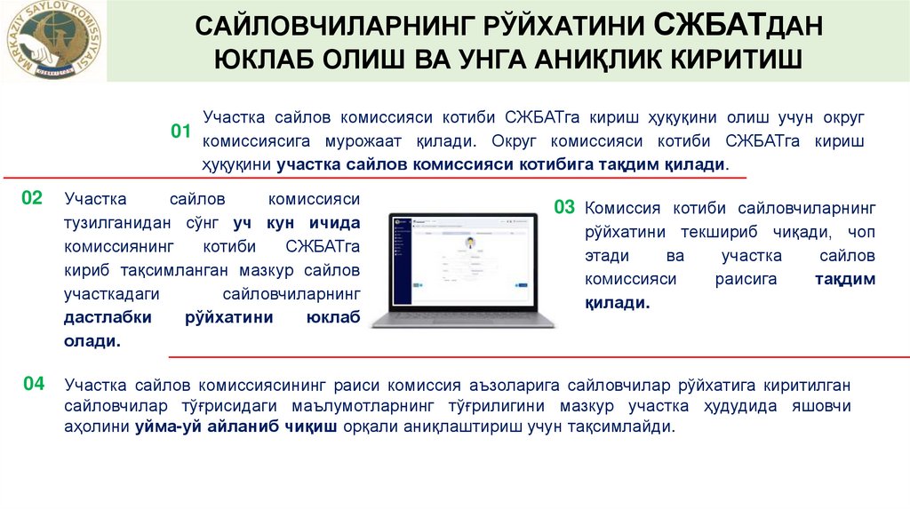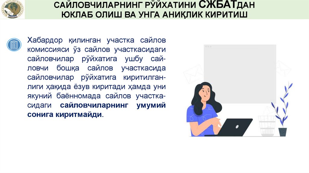 САЙЛОВЧИЛАРНИНГ РЎЙХАТИНИ СЖБАТДАНЮКЛАБ ОЛИШ ВА УНГА АНИҚЛИК КИРИТИШ