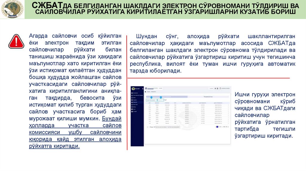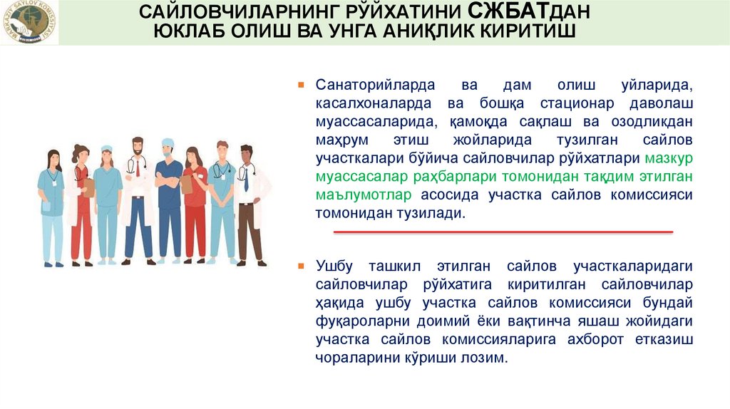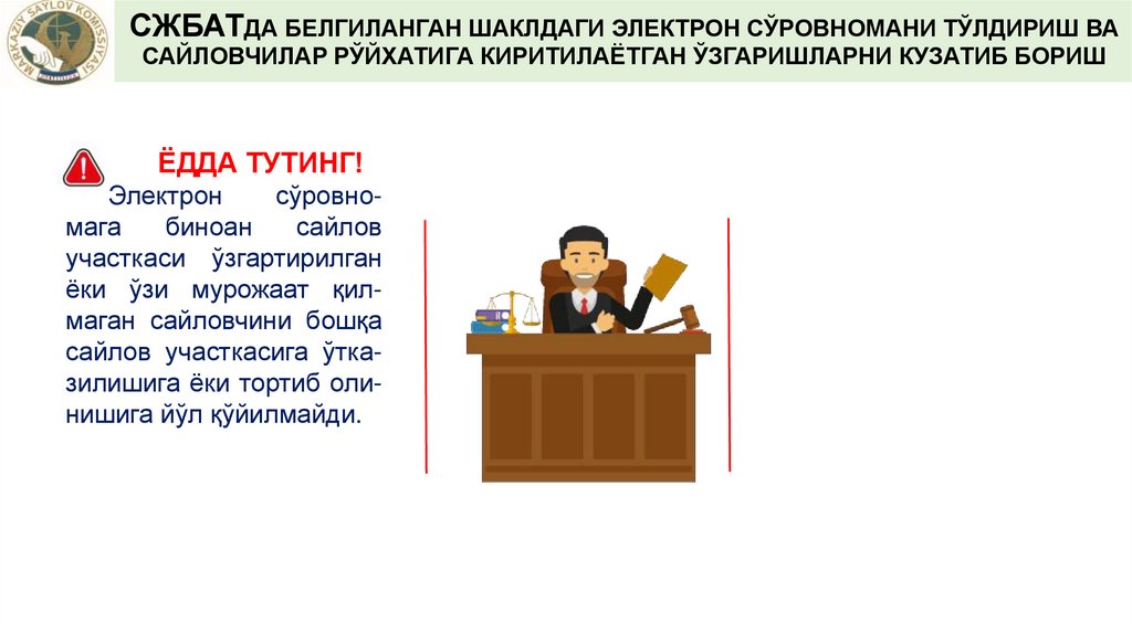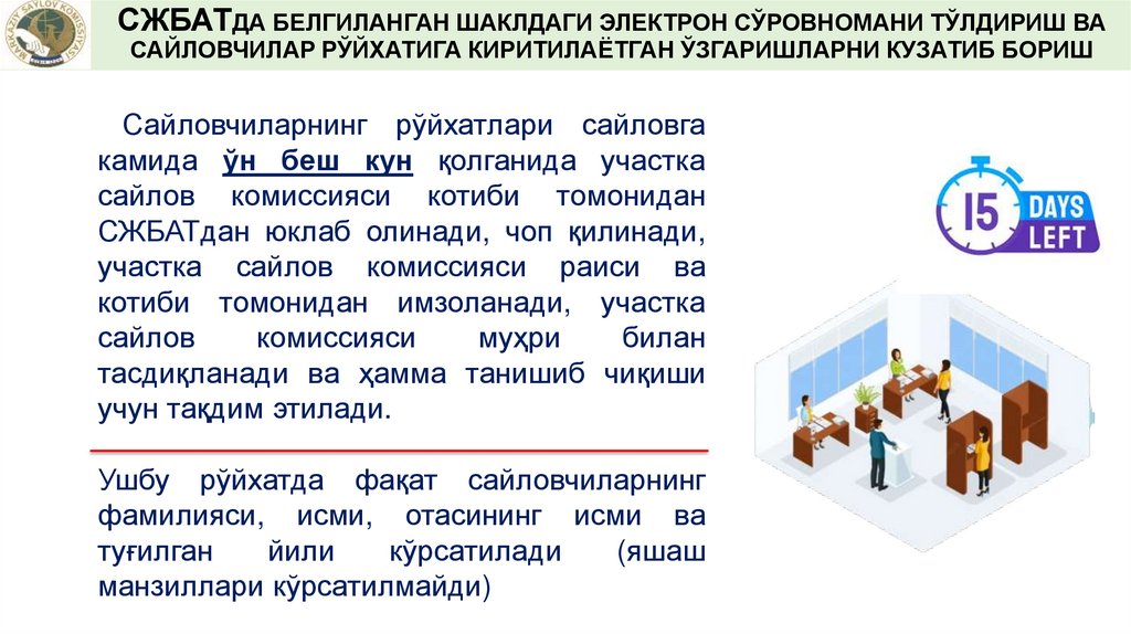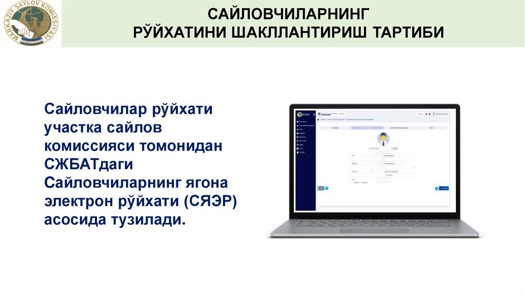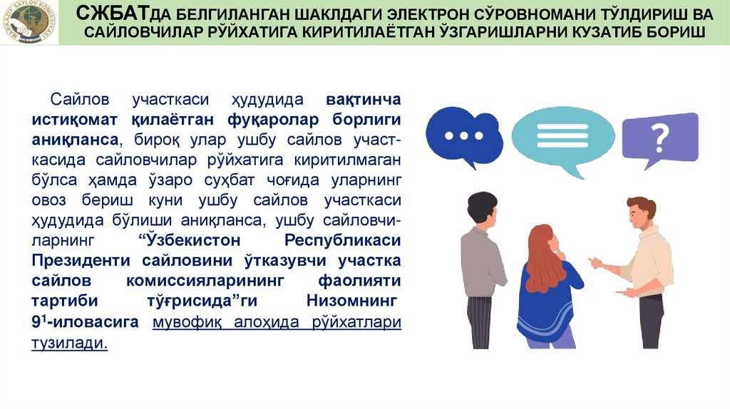 САЙЛОВЧИЛАРНИНГ РЎЙХАТИНИ СЖБАТДАНЮКЛАБ ОЛИШ ВА УНГА АНИҚЛИК КИРИТИШ