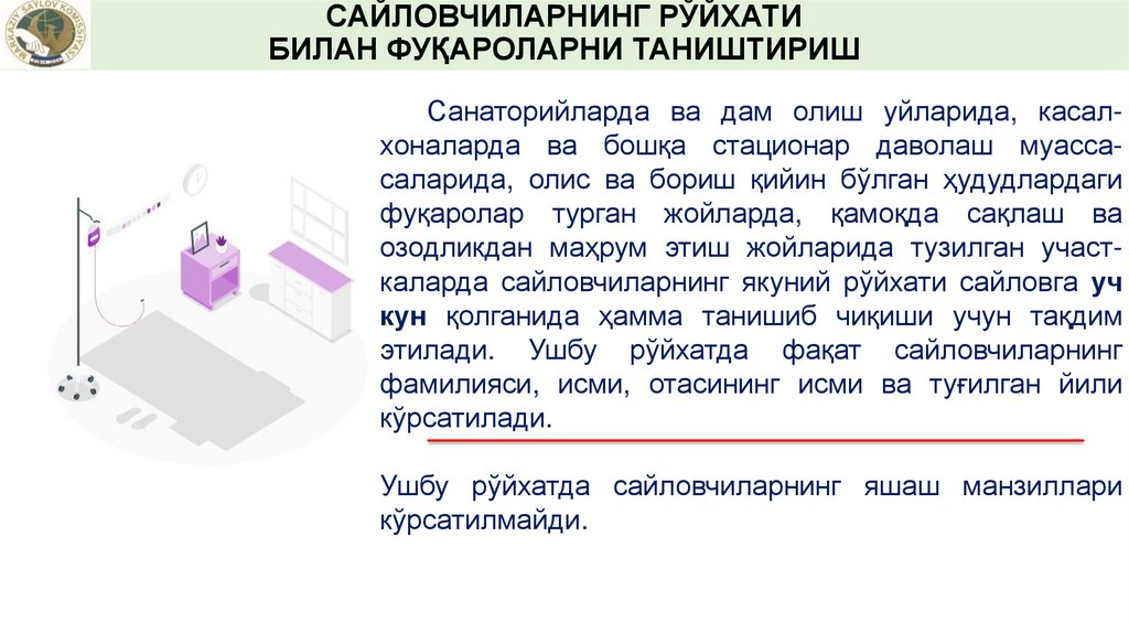 • рўйхат тузилаётган пайтда мазкур сайлов участкаси ҳудудида