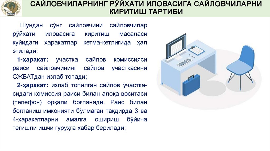 САЙЛОВЧИЛАРНИНГ РЎЙХАТИ ИЛОВАСИГАСАЙЛОВЧИНИ КИРИТИШ ТАРТИБИ