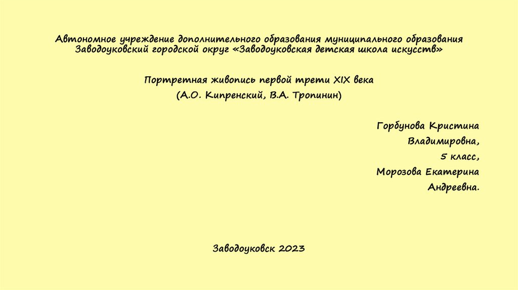 Портретная живопись первой трети XIX века (А.О. Кипренский, В.А. Тропинин)