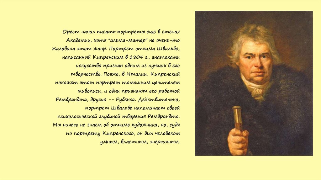 Орест начал писать портреты еще в стенахАкадемии, хотя "альма-матер" не очень-то