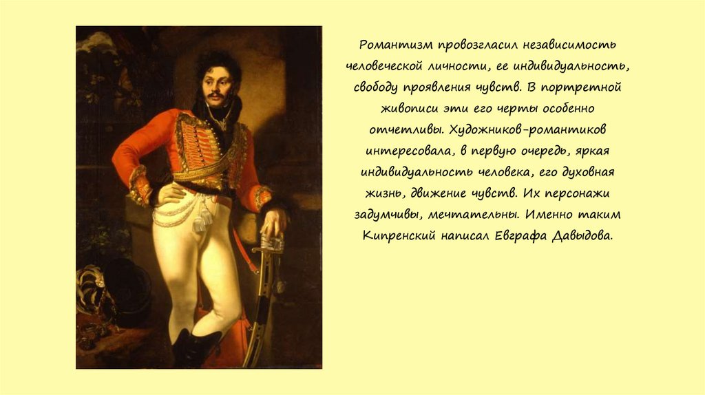 Романтизм провозгласил независимостьчеловеческой личности, ее индивидуальность,