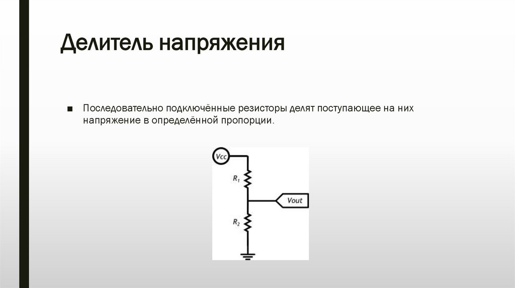 ■ Последовательно подключённые резисторы делят поступающее на них