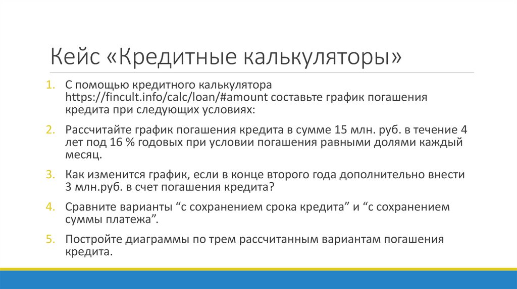 Кейс «Кредитные калькуляторы»1. С помощью кредитного калькулятора
