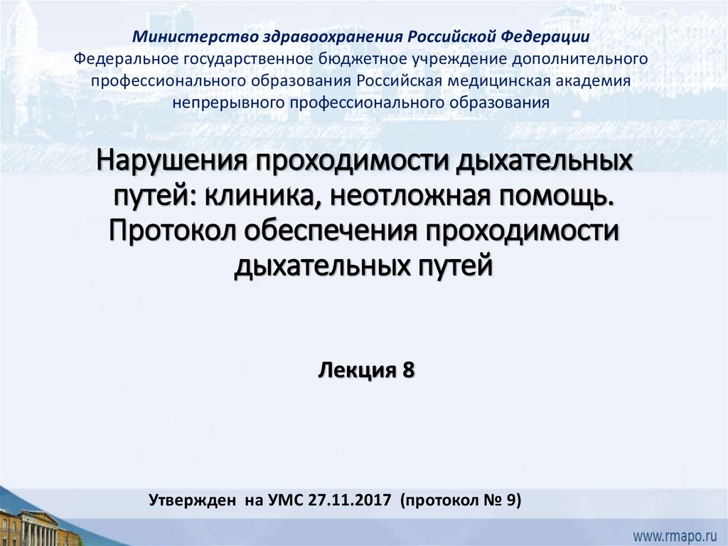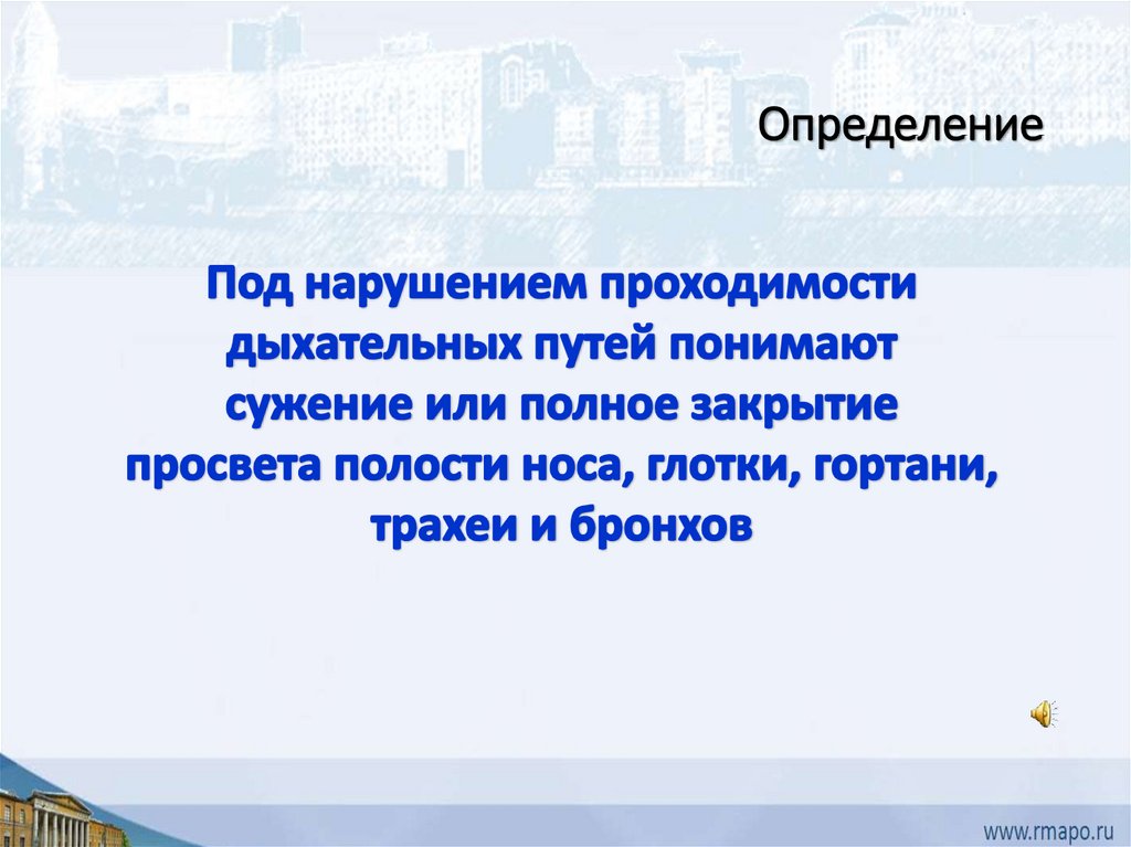 Нарушения проходимости дыхательных путей: клиника, неотложная помощь. Лекция 8