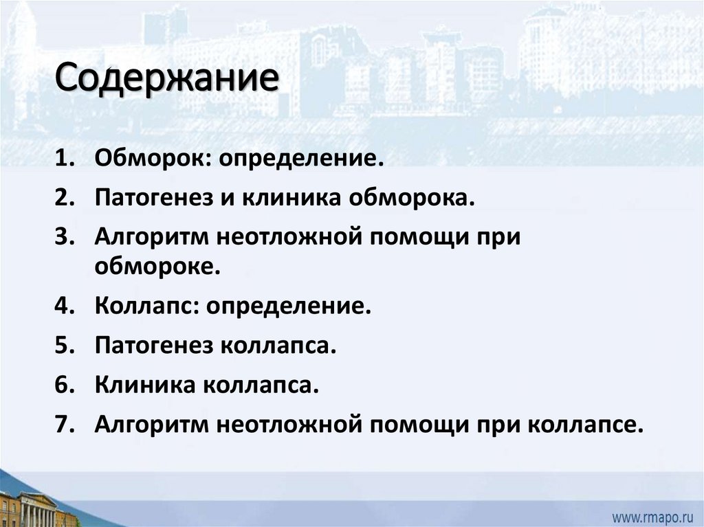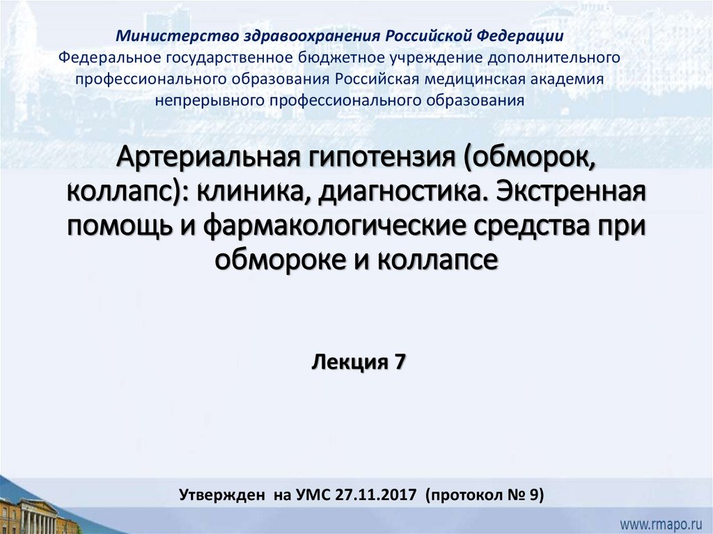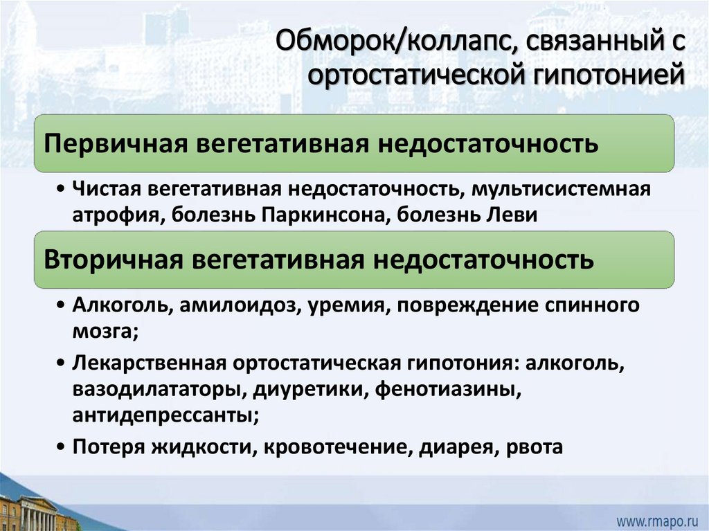 Артериальная гипотензия (обморок, коллапс): клиника, диагностика. Лекция 7